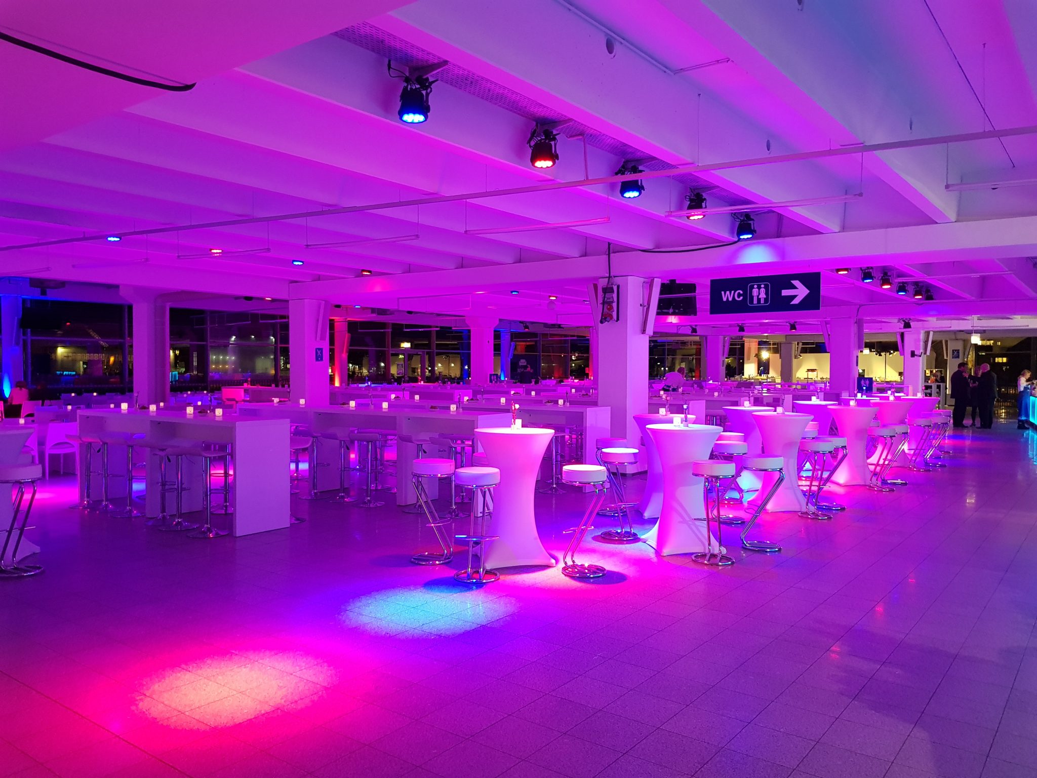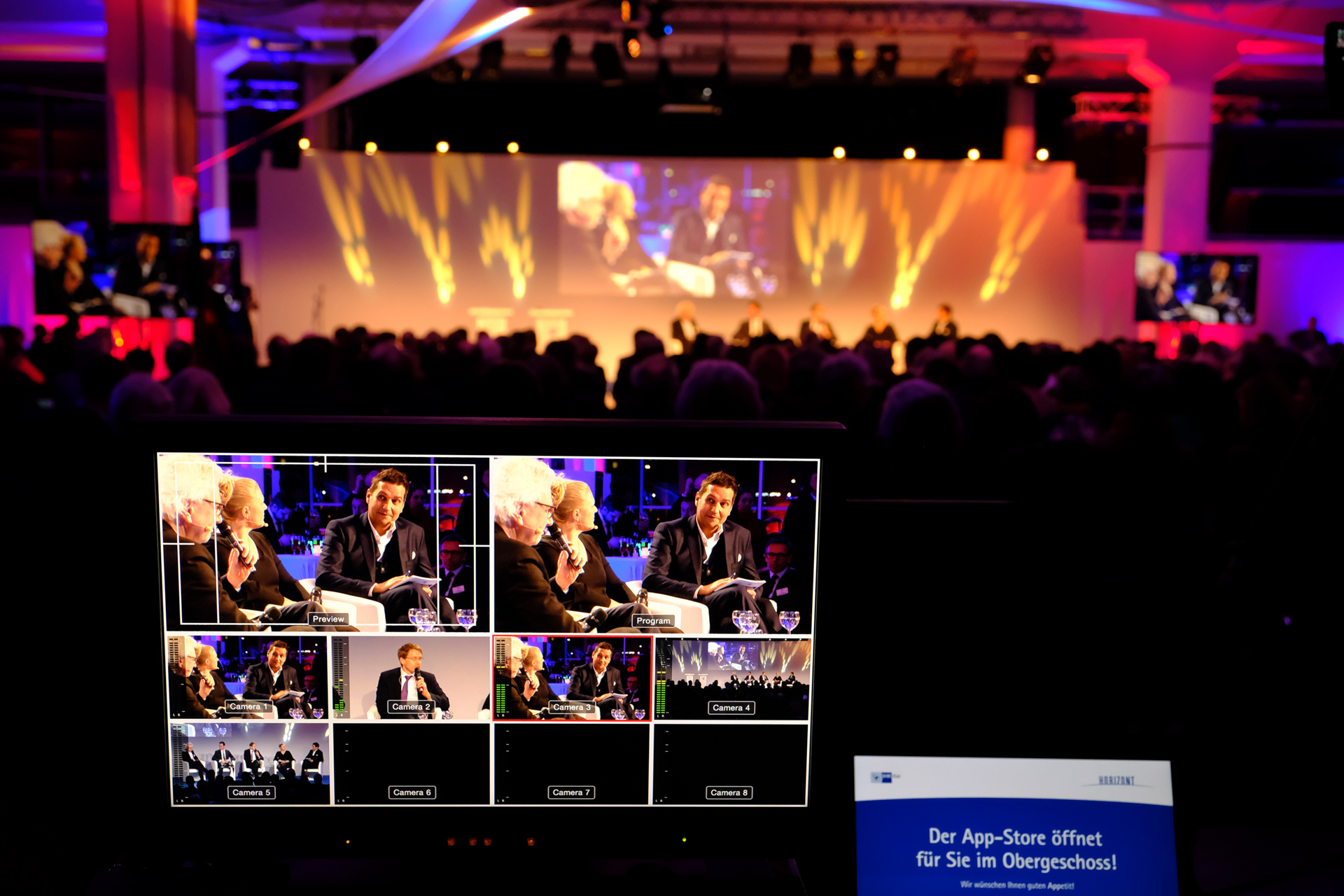 Gäste vor Ort sehen Bühne, Licht, Moderation und können spontan ins Programm eingebunden werden.